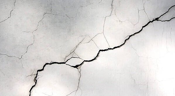 Deep wall fissures often cosmetically painted over by contractors.